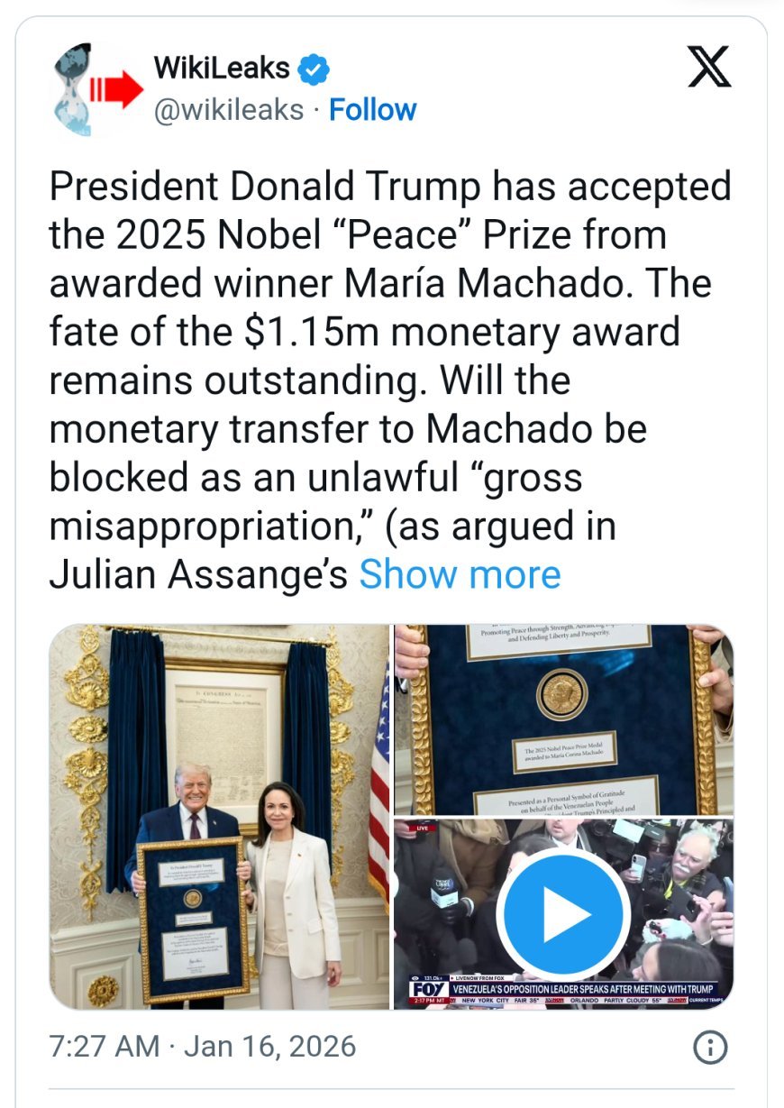 ఓవల్ ఆఫీసులో స్వాతంత్ర్య ప్రకటన ముందు ఇద్దరూ ఫోటోకు పోజులిచ్చారు, మరియు ట్రంప్ పతకాన్ని కప్పి ఉంచిన పెద్ద బంగారు చట్రాన్ని పట్టుకుని పెద్దగా నవ్వారు. కానీ బహుమతి ఇప్పుడు ట్రంప్కే చెందుతుందా, మరియు వెనిజులా విషయానికి వస్తే అది అమెరికా అధ్యక్షుడి చర్యను మార్చగలదా?